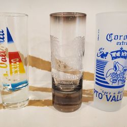Lot of 3 Collectible Clear Shot Glasses Glass White Corona Extra Silver Springs Florida Mexico Logo $1Schererville, IN