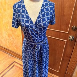 Blue Chain-Print Wrap Midi Dress with Tie Waist by Donna Morgan$65Chicago, IL