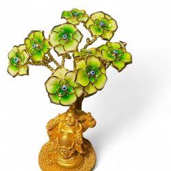 green blue Evil Eye Money Tree with Painted Golden Buddha Statue White Artificial Flowers Home Office Protection Decoration Feng Shui Ornament$34Hammond, IN