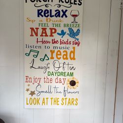 Canvas Porch Rules Wall Hanging 24x48,Hand Painted…BEAUTIFUL Piece !!! $60Crestwood, IL