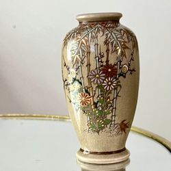 Small ASIAN HAND-PAINTED VASE ~Raised Flowers, Bamboo, Branches, Gilt, Red, Torquoise, Green $11Highland Park, IL