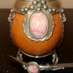 Yerba Mate Gourd Cup with Rhodochrosite & Bombilla – Premium Argentine Set