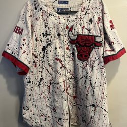 Vintage 90s Starter NBA Chicago Bulls Pinstripe custom spray paint Baseball Jersey Mens Sz xl $90Chicago, IL