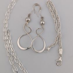 ✨.925 Sterling Silver Jewelry Bundle – Paperclip Necklace, Bracelet & Dangle Earrings – Set$89River Forest, IL