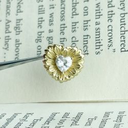 Gold Heart-Shaped Charm Bead with Blooming Petals & Heart Diamond, Romantic Design, Fits Pandora Bracelets$15Chicago, IL
