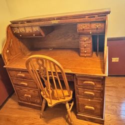 🗝️ Rare ‘IWinners Only Inc.’ Solid Oak Roll Top Desk + Matching Chair! (Best for quality searchers)$600Glendale Heights, IL