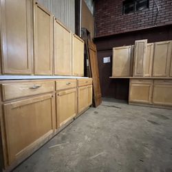 Set of 10 Merillat kitchen cabinets, 7 wall 3 base for kitchen laundry basement storage $875Sauk Village, IL