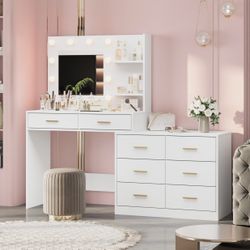 Vanity Desk w/LED Mirror Lights,Makeup Dressing Table w/Drawers & Storage Stool$80Gary, IN