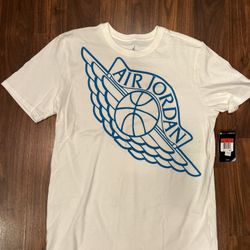 Nike Air Jordan 2015 Dri Fit T Shirt White/Blue Wings Basketball Logo Size Large$50Chicago, IL