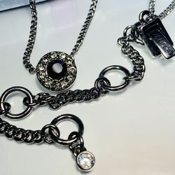 *NEW* Fabulous Solid Sterling Silver pendant-pin 3" w/1 diamond on heavy 18" Italian Herringbone chain.$90Palatine, IL
