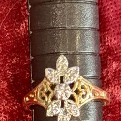 10K Yellow Gold-Diamond Cluster Floral Pattern Ring-Open Scroll designed. New! $600Morton Grove, IL
