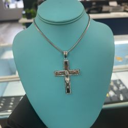 925 Sterling Silver 24” Franco Chain W/ 2” Cross Pendant $230East Chicago, IN