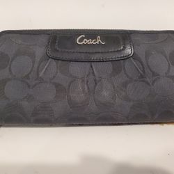 Womens Black Designer Coach Wallet Logo Storage Zipper Closure Silver Credit Card Holder $12Schererville, IN