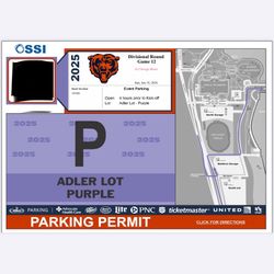 1 BEARS PARKING PASS ADLER LOT PURPLE PASS $175Chicago, IL