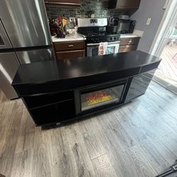 Black TV stand with working electric place$100Aurora, IL