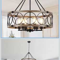 6-Light Farmhouse Chandelier for Dining Room,21'' Black Rustic Industrial Drum Chandeliers Imitation Wood Grain Pendant Light Fixture for Kitchen Isla$60Palos Park, IL