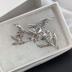 B2✨Sterling Silver Vintage Marcasite Bird Brooch🤍🖤✨