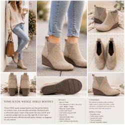 TOMS Ankle Booties Womens 7 Beige Suede Chelsea Wedge Pull On Boots Quiet Luxury$50Chicago, IL