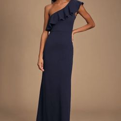 Lulus one shoulder ruffle maxi dress (Navy, Small)$30Chicago, IL
