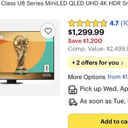 Hisense 75" Class U8 Mini-LED ULED 4K UHD Google Smart TV (75U8QG, 2025 Model) - QLED, Native 165Hz, VRR 288, Up to LD5600, 5000 Nits, HDR10+, Dolby V$1,000Chicago Heights, IL