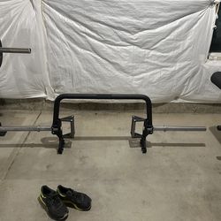 ADJUSTABLE SQUAT RACK 100LBs. 6'STRAIGHT BAR. 2-50s