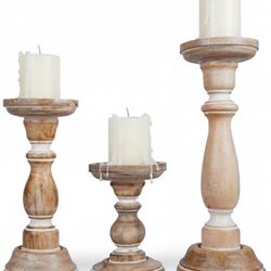 Mela Artisans Wooden Pillar Candle Holders | Tuli Design | Set of 3 Mango Wood Candlesticks | Whitewash | Sizes 6" & 9" & 12" | Decorative Centerpiece$30Palos Park, IL