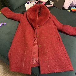 Kate Spade- Red N Gold Tweed Coat Faux Fur Collar $100Skokie, IL