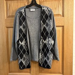 Alfred Dunner Sweater Women L Layer Black Gray Floral Paisley Block Long Sleeve $16Hoopeston, IL