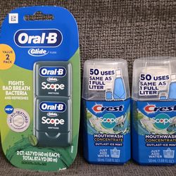 (2) Crest Scope Outlast Ice Mint Mouthwash Concentrate, 1.69 fl oz & Oral-B Glide 2-ct floss$8Lake Villa, IL