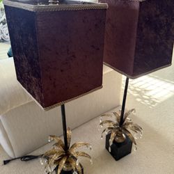 Stunning Pair of Hollywood Regency Style Table Lamps with Velvet Shades and Crystal Accents$100Lake Zurich, IL