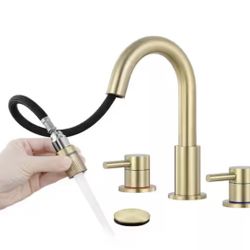 2 handle Pull down Spout 8 in. Widespread Bathroom Faucet 3 Hole Bathroom Sink Faucet in Brushed Gold$30Chicago, IL