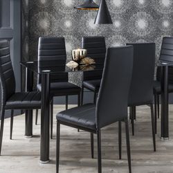 Glass Dining Table Set - 6 Seater - Anya Black Faux Leather Chairs$160Darien, IL