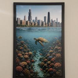 11 X 17 Framed Art - Chicago Skyline with Tropical Sealife Painting$15Chicago, IL