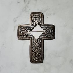 Vintage Sterling Cross Pendant / Brooch Etched Southwestern Design Signed $35Homer Glen, IL