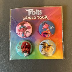 Trolls World Tour Pin Set - 4 Collectible Buttons NEW / RARE Flare$12Worth, IL