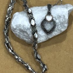 Set Of Bracelet And Pendant , 925 Sterling Silver Mother-of-Pearl & Marcasite Gem Bracelet 7”And necklace pendant 18” Italian Chain$99Aurora, IL