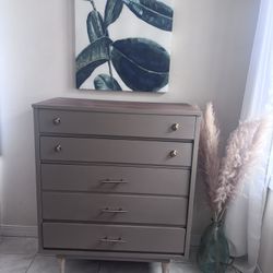 Mid-Century Modern Dark Brown Wood and Gold Metal 5-Drawer Storage Chest$175Bensenville, IL