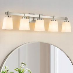 40β Brushed Nickel 5-Light Bathroom Vanity Light β Frosted Glass Shades$115Matteson, IL