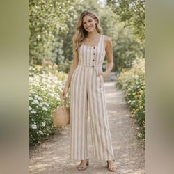 Indigo Rein pinstripe linen/rayon jumpsuit romper size Lrg $20Geneva, IL