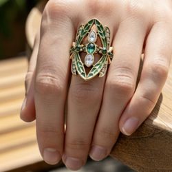 Vintage-Inspired Green Enamel and Crystal Statement Ring$45Chicago, IL