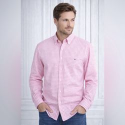 Vineyard Vines by Shep & Ian dk pink gingham Tucker shirt L 16–16.5 Neck 23” P2P$20Geneva, IL