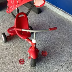 Radio Flyer 3 In 1 push and pedal tricycle with overhead umbrella. Storage in rear, Easy Retract Cover, Padded Hand Grip. Plainfield, Illinois$45Joliet, IL