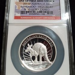2011P Australia Silver $1 Kangaroo - High Relief PF 70 Ultra Cameo Silver Coin $85Aurora, IL
