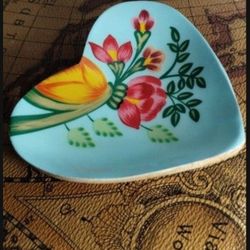 HAND PAINTED WOODEN SHAPED HEART RING DISH 4" - M199$14Chicago, IL