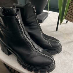 Zara Black Leather Combat Boots