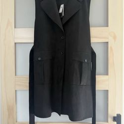 Banana Republic Black Faux Suede Belted Long Vest with removable belt Size S Black NEW$35Wheeling, IL