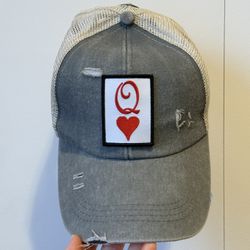 Gray and Cream Trucker Hat with Red Queen of Hearts Patch$7Chicago, IL