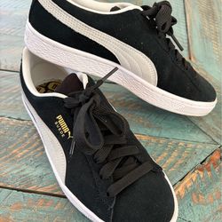 Puma Suede sneakers size 4.5 black with white. Available in Joliet too$30Oswego, IL