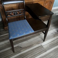 Mahogany 1900's Wooden Vintage Telephone Table With Blue Cushioned Seat. $60Pingree Grove, IL