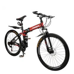 Topteng - 26" 21-Speed Folding Mountain Bike- Full Suspension,Disc Brakes,High-Carbon Steel Frame, Adult All-Terrain Bicycle Red - Black&Red$325Oak Lawn, IL